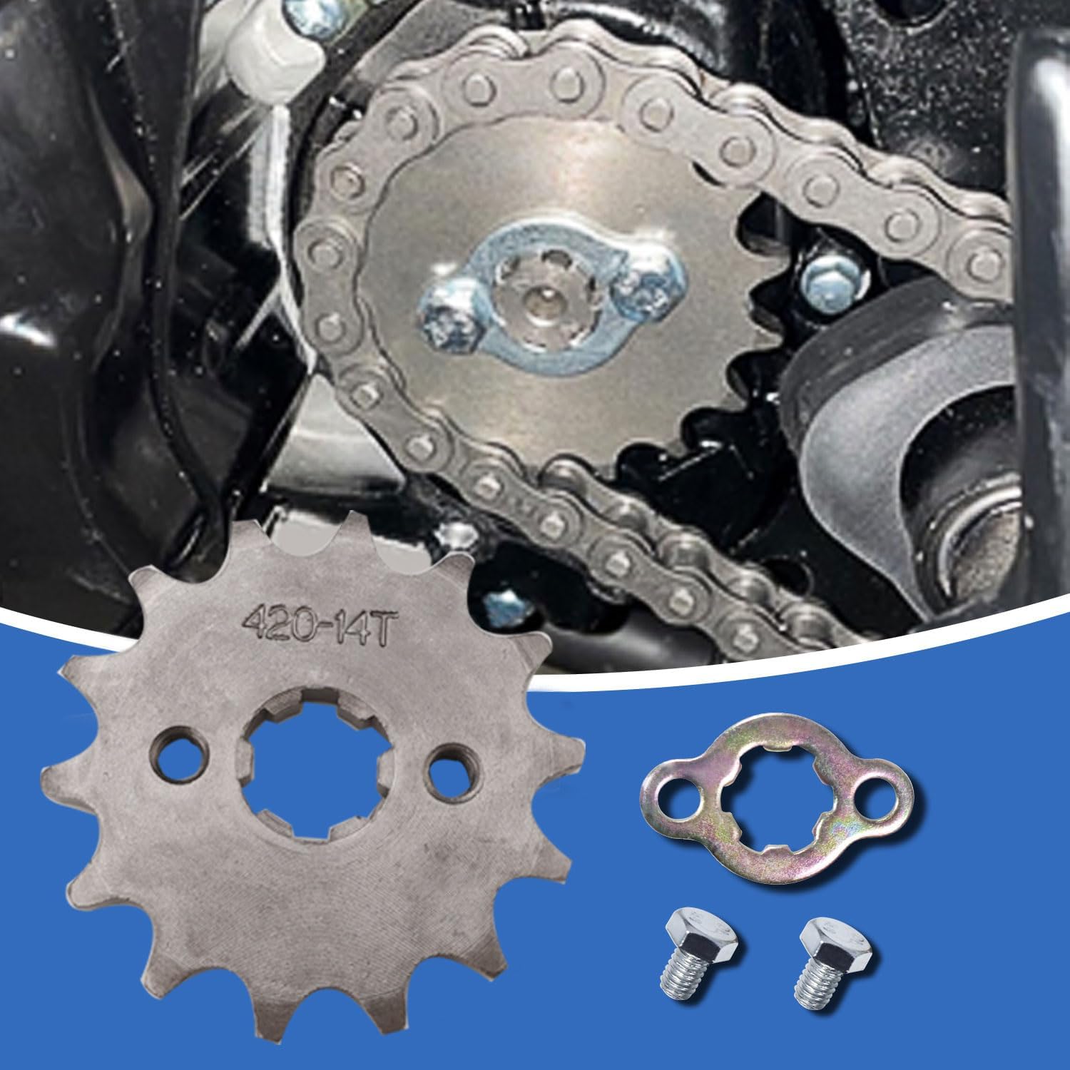 | Included Components | Package includes: 1 x 420 Chain 120 Link, 12 x 420 Master Link,1 x chain breaker tool,1 x 35-tooth rear sprocket,1 x 420 13T front sprocket |